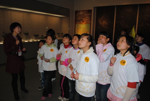 由美籍华人、克拉克大学中国项目主任李柏庆先生发起赞助,信阳博物馆、新县教体局联合举办的“博物馆的一天”活动于4月6日在信阳博物馆拉开序幕。此次活动让山区的小学生开阔了眼界,了解了信阳的历史,丰富了文化生活,培养同学们的科学精神和探究意识,促进素质提高,将博物馆文化引进校园,实现学校教育与社会资源的双互动。