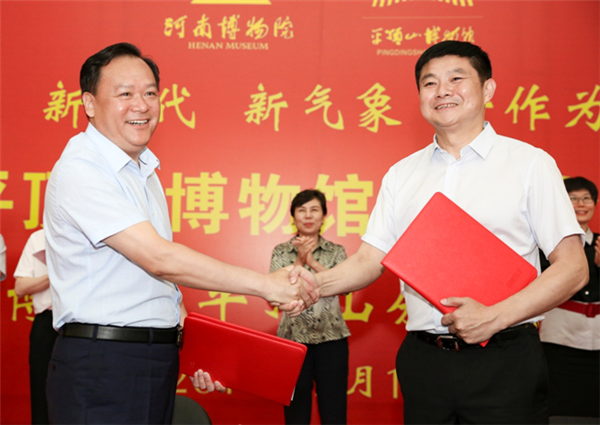 河南省文化厅党组书记、厅长宋丽萍(左),平顶山市市长张雷明(右)