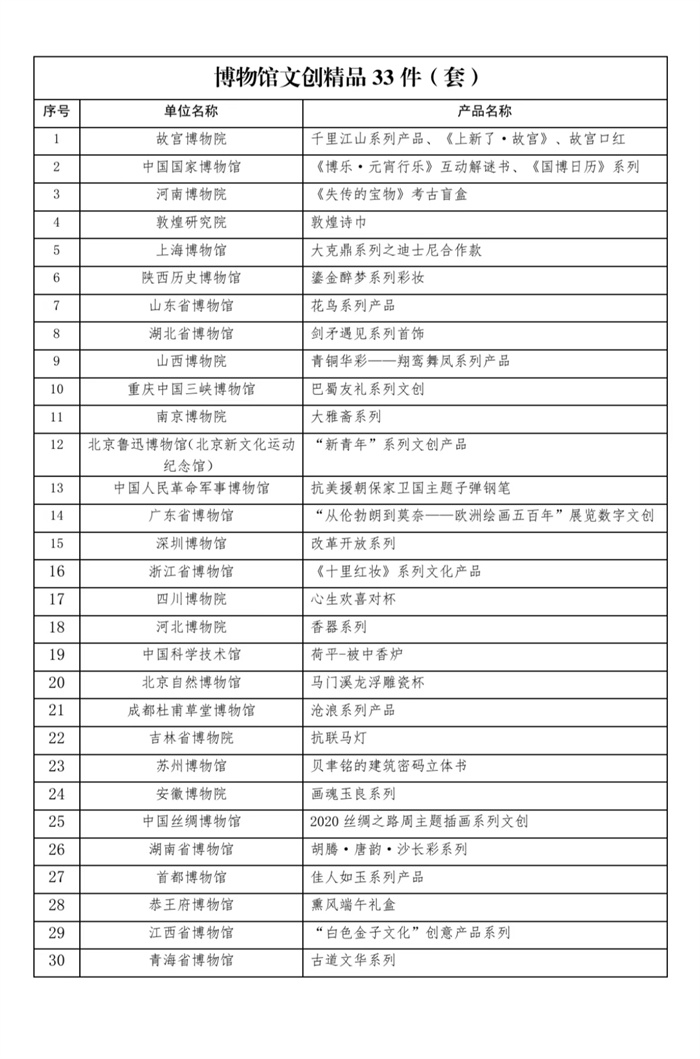 据悉,今年7月至9月,中国文物交流中心面向全国文化文物单位(博物馆)开展了“十三五”期间文化创意产品开发优秀成果的征集与评选活动,收到了全国208家博物馆的报送产品1000余件(套),经过初评、终评,最终确定30家博物馆共计33件(套)文创精品入选《全国博物馆文化创意产品目录汇编》。