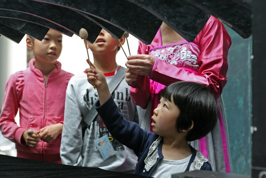 大连的小观众对“古代的石质乐器——磬”表现出极大的兴趣