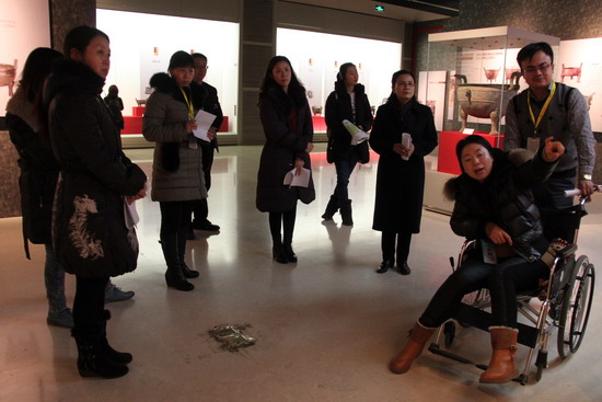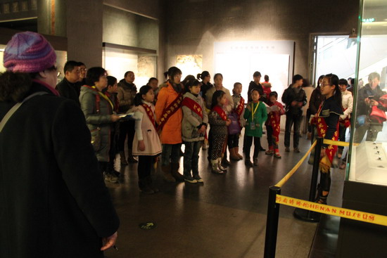 考核主要以展厅听讲的方式进行,成人按志愿者的服务年限和服务领域,分别安排基本陈列讲解、专题展馆讲解、“鼎盛中华”临时展览讲解等不同内容,灵活采用通讲或选取重点文物讲解等办法进行考核;小志愿者按照服务年限分4个层次:第八届小志愿者讲解莲鹤方壶,第七届小志愿者讲解一楼,第六届小志愿者三楼通讲,第四届、第五届通讲一楼或二楼。