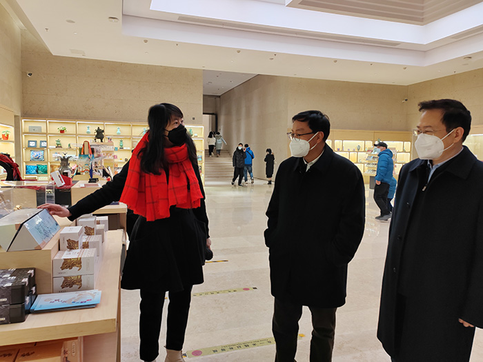 河南省文化和旅游厅党组书记、厅长黄东升(中)参观文创区域