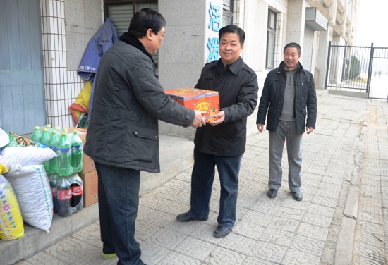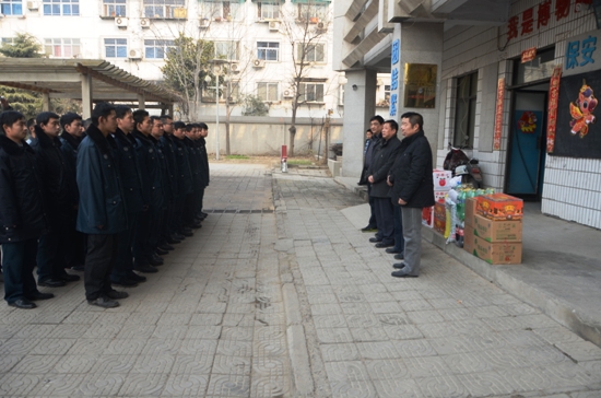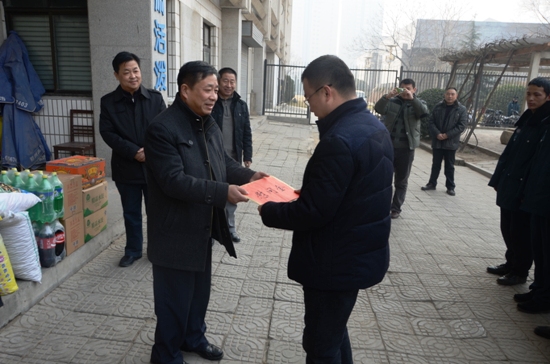 院纪委书记葛聚(中)把过节食品送交保安队