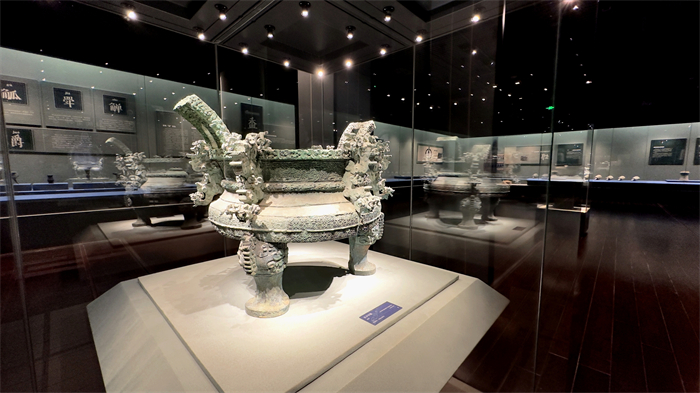 展厅内,春秋吴王僚剑、王子午鼎等一件件重磅展品,以及器物铭文和相关文献资料,展现了从“天下万国”到“天下大同”,中华文明连绵不绝、兼容并包的文化特质;沉浸交互、数字艺术和装置艺术展现等新鲜有趣的展陈方式,则让文物活化再现,进一步提升观展体验。