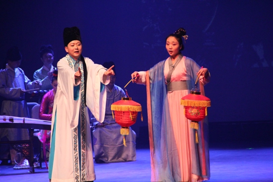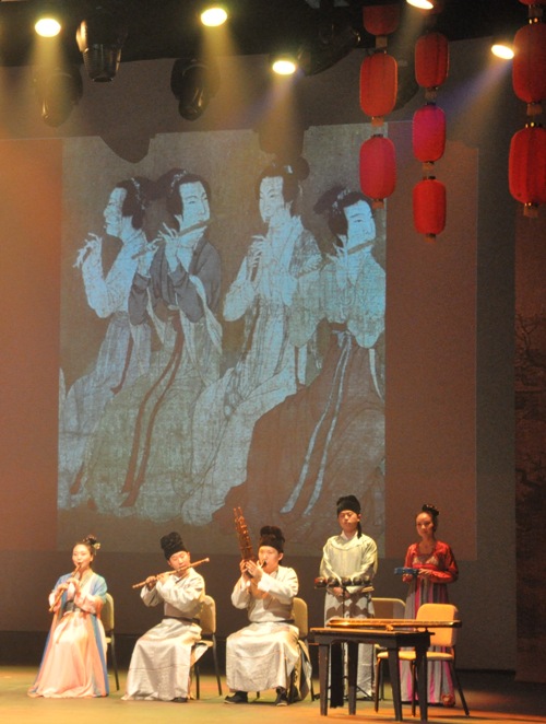 这次赴美国演出的曲目分为上下半场,上半场以《华夏古韵》为题,主要介绍中原地区出土的重要音乐文物贾湖骨笛;殷墟陶埙、铜铙;两周编钟、编磬;及唐琵琶、古琴等乐器;穿插欣赏古典乐曲《远古回响》、《商颂·玄鸟》、《诗经·小雅·鹿鸣》、琴曲《流水》等乐曲。下半场则上演华夏古乐团全新创作的情景音乐剧《上元灯月》,此剧以清新的乐曲风格、崭新的舞台呈现,巧妙的情节设计将中华传统上元节灯月交辉、诗乐相和的纯美佳境带给广大观众。 下面是一组精彩的现场图片,与朋友们一起分享——