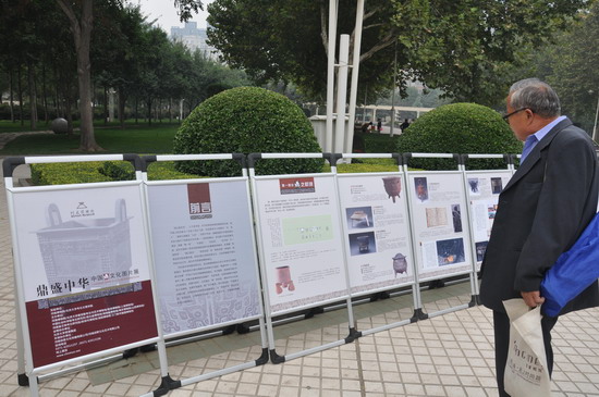 在当天的图片展展出期间,吸引了不少市民及学生驻足观看,大家或交流、或与讲解员互动。一位张姓市民高兴的说,“现在工作忙、时间少,就是住在博物院旁边也难有机会去看展览,有了这样的图片展就很方便了,即使博物院关了门、下了班也能看!”据悉,此次推出的“鼎盛中华——中国鼎文化图片展”,通过百余张精美图片、30幅版面,系统、全面地展现了中国鼎文化的萌生、发展与变迁,让公众尤其是广大学生透过“鼎”来发现、感知中华文化的悠久与绵延。“十一”前后,“鼎盛中华——中国鼎文化图片展”还将陆续在郑州、开封、洛阳、安阳等地推出,让“鼎盛中华”展走向学校、走进社区,让博物馆文化融入生活、贴近大众,为凝聚正能量、共筑中国梦助力。