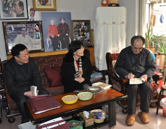 省文化厅厅长杨丽萍、厅纪检组长陈峰(左)一行看望老专家许顺湛