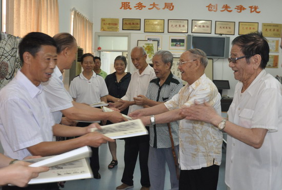 周家平、离退休老干部书记周桂祥(右一)与郭太松合影留念