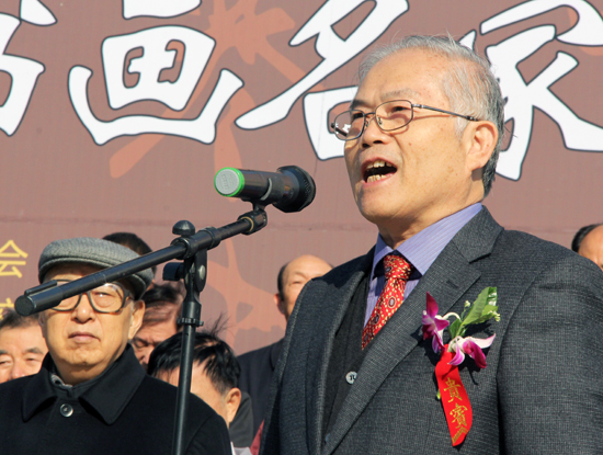 河南省传统文化促进会会长马文章在开幕式上发言,他说:传承和弘扬中华优秀传统文化,实现中华民族的伟大复兴,共圆中国梦是炎黄子孙共同的历史责任。8年来,在河南省委、省政府、省政协、省委宣传部、省文化厅等领导部门的大力支持和指导下,在全省相关社会团体、企业等各界朋友的大力支持下,省传统文化促进会紧抓“加强两岸文化交流,促进祖国和平统一”这一主题,多次成功举办两岸文化交流活动,并得到社会各界及台湾同胞们的一致好评。让我们以书画艺术交流作为连接两岸同胞民族情感的纽带和桥梁,铭记文化之“根”源远流长,同胞之“根”血浓于水,民族之“根”情同手足的理念,共同推动中华优秀传统文化的传承,为助推中原经济区建设和华夏历史文明传承创新区建设,为实现华夏繁荣昌盛共同奋斗。