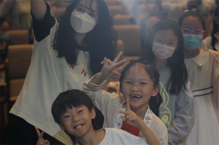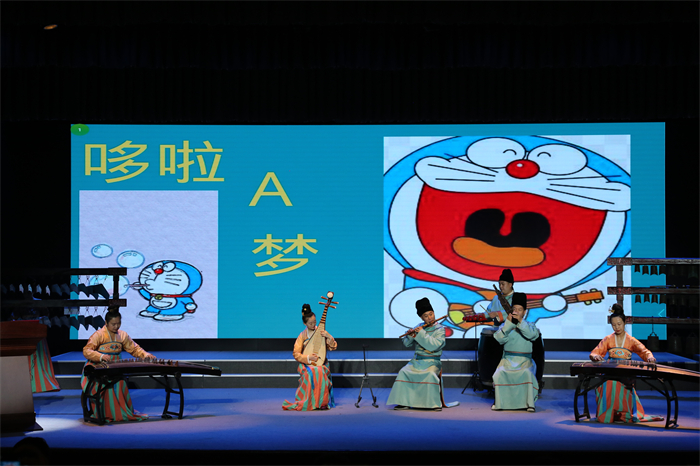 此次特约体验活动,内容分别设置为:“远古的回响——贾湖骨笛及史前吹管乐器鉴赏及互动体验”“钟鼓煌煌——古代金石打击乐与体验”“琴瑟和鸣——古代弹拨乐器与体验”等部分。主要的课程内容为:一是古代乐器讲解与乐曲示范。此环节由乐团的乐师讲解乐器的出土、复原等背后的历史故事,精彩的讲解与乐曲演奏,展示中国古代音乐文化的大美意境。二是现代乐曲展示。乐师们用古老的乐器演绎小朋友耳熟能详细的儿童乐曲。热门曲目《孤勇者》,动画片《哆啦A梦》主题曲,孩子们忍不住齐声合唱。三是互动体验。孩子和家长零距离观看与体验乐器,感受古代乐器的音色、制作工艺、演奏技法等。此环节调动了在场所有的家长和孩子,将课堂的氛围推向了高潮。