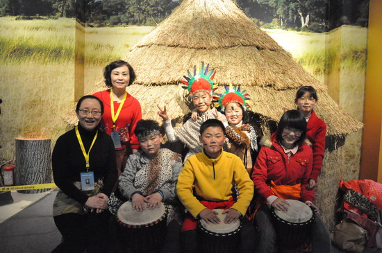“非洲”鼓手和激情舞者合个影纪念马年新春的到来