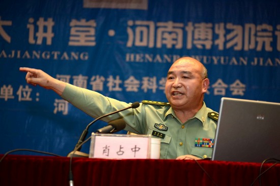 肖占中首先从党的十八大报告第九部分“加快推进国防和军队现代化”讲起,他阐述了“建设与我国国际地位相称、与国家安全和发展利益相适应的巩固国防和强大军队,是我国现代化建设的战略任务”这一重大思想。他说,我们在现实情况下,亟需增强忧患意识,亟需增强国防意识,落实到我们的行动上就是强化责任意识,要实现中国梦体现在我们每一个人身上。