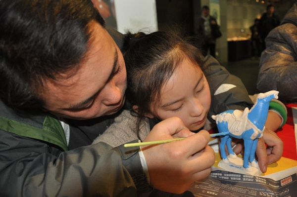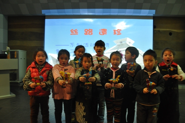 主题一:“玩转丝绸之路”之烧制素三彩。来自西雨艺术中心的泥塑老师具有丰富的儿童教育经验,他结合十二张幻灯片为孩子们讲授唐三彩的定义、唐三彩的工艺、制作过程、产地分布和造型。图文并茂、层次清晰、通俗易懂的讲授,让一帮5到10岁的孩子们听得津津有味儿。当老师把特制教具——素三彩马发到大家手上的时候,孩子们欢呼起来,迫不及待的投入到创作中。为自己的马设计色搭配、整理颜料盘、一笔笔勾描、一点点涂色,红色的马身、白色的马蹄、黄色的马鞍、金色的马铃铛……最让孩子和家长们振奋的是作品展示环节,每一个孩子都有机会展示自己的作品,并且陈述唐三彩的特点以及自己的创作理念,为未成年人成长过程中积累了宝贵的成就感和荣誉感。