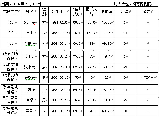 1.根据《河南省文化厅直属事业单位2014年公开招聘工作人员方案》,招聘总成绩排名第一者参加体检;