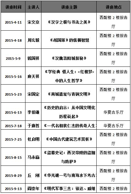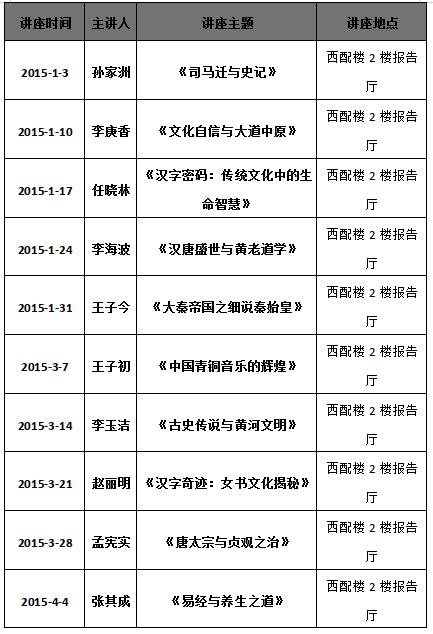 2015年中原国学讲坛讲座场次安排