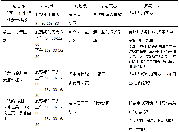 “徐悲鸿与法国大家作品展”观众参与活动一览表