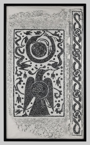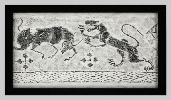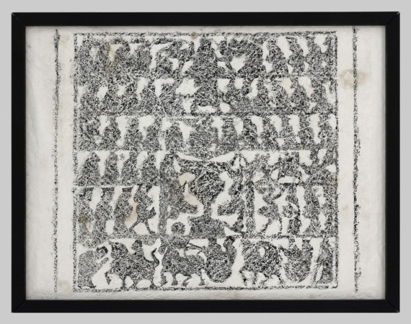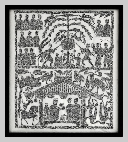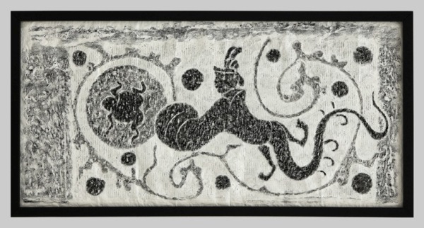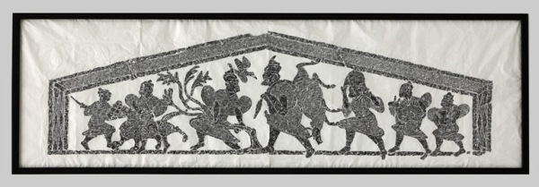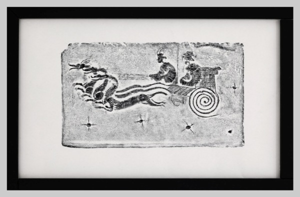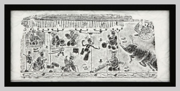 汉画拓片是运用我国古老的传统拓印技艺,将汉代遗存的画像石和画像砖以宣纸和墨汁将其图案清晰地拓印出来的一种艺术形式,同时其形式粗狂雄浑,丰富的符号与图案对于当代美术创作亦有特别的指导意义。