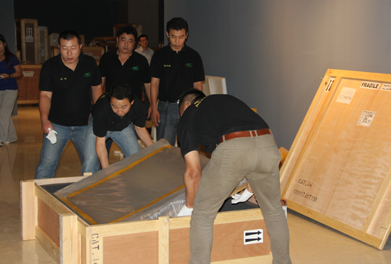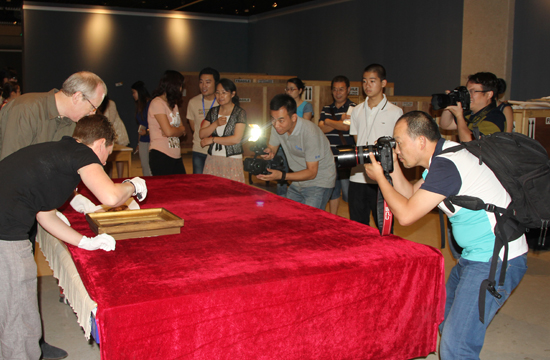中英双方专家对开箱后的展品仔细检验是否完好