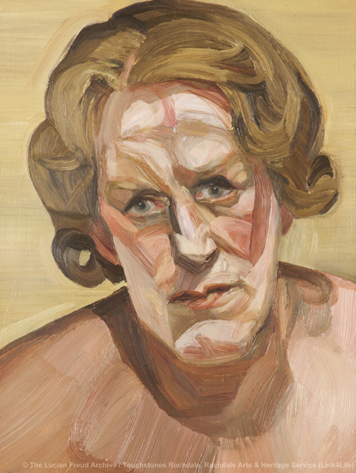 卢西安•弗洛伊德(1922-2011年)黄色背景的女人头像
