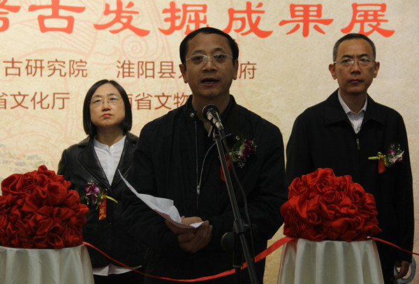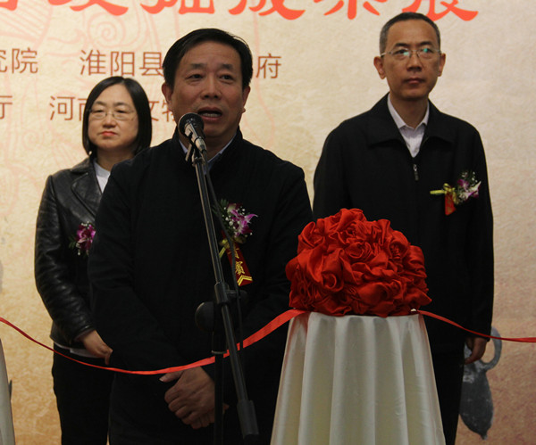 顾玉才在致辞中说,“手铲释宛丘——淮阳平粮台古城遗址考古发掘成果展”是贯彻落实党的十九大精神的一个具体举措,是国家文物局文化扶贫项目支持地方文化事业发展和平粮台遗址近40年来考古成果的集中展示。河南省各级政府对平粮台遗址的保护利用工作做得很好很深入,国家文物局将进一步在人力、物力、财力、政策、项目等方面继续加大对淮阳平粮台遗址开发与利用的扶持力度。多年来我国的考古工作取得了丰硕的成果,为了适应新时代的新要求,要让民众更多地了解文物,让更多的文化遗产惠及百姓,文物部门要通过办展览、建设遗址公园等多种形式来保护文物、利用文物、传承文物,真正做到让文物“活”起来,让民众享受文化成果。