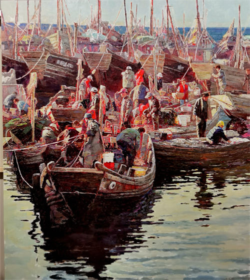 《斜阳归舟》188㎝×166㎝布面油彩 2022 侯震