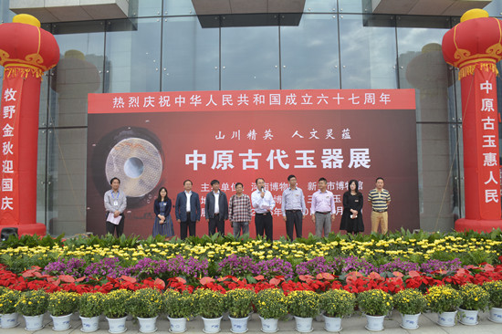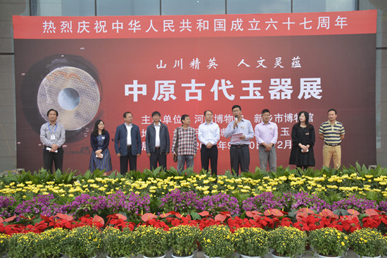 新乡市文广新局党委委员、市博物馆馆长牛万新(右四)在开幕式上致辞