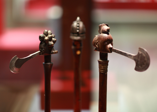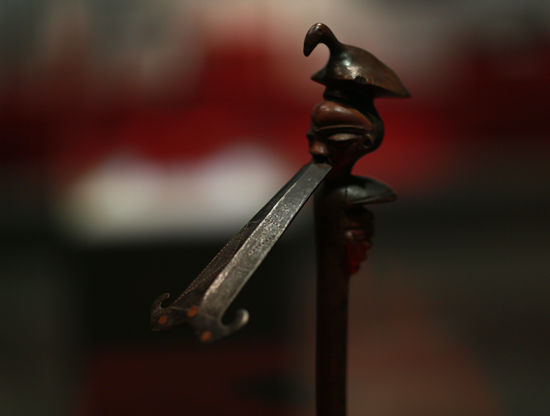 李宏说,这些兵器每一件都有着闪光的历史,或为战士的武器、或为酋长高贵身份的象征……刀上的磨痕、盾上的箭孔、箭簇上的毒药仍然依稀可见,都清晰地记录着非洲的历史。随着欧洲人将火枪带到了非洲。这些传统的冷兵器逐渐被火器取代。19世纪末,大批的欧洲探险家与殖民者深入非洲,将这些精美的艺术品带入西方收藏界和博物馆。这些冷艳的兵器,历经沧桑、几经辗转,其原本的功能与曾经的辉煌已经退去,但其所蕴含的制造者的智慧、使用者的寄托及其呈现出的力量和美感,却将非洲土生土长的具有鲜明特征的文化保留了下来。今天,我们面对这些兵器时,想到的不是野蛮与杀伤,而是非洲文化的鲜活与震撼,是非洲人的奔放与热情,是自然造就的文化对今天价值的启迪。
