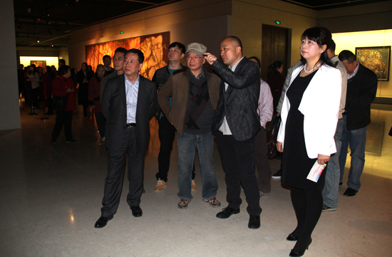 开幕式结束后、尹朝阳陪同出席领导一同参观展览