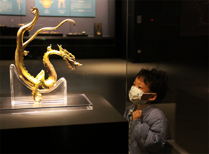 第四部分“浮光跃金”主要介绍和展示鎏金银工艺。鎏金银是将金、银等镀于铜器等表面。我国的鎏金银工艺约始于春秋晚期,战国至汉极盛,是世界上最早使用汞齐鎏金银的国家,。