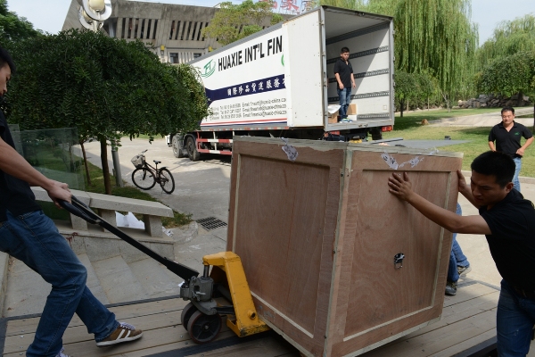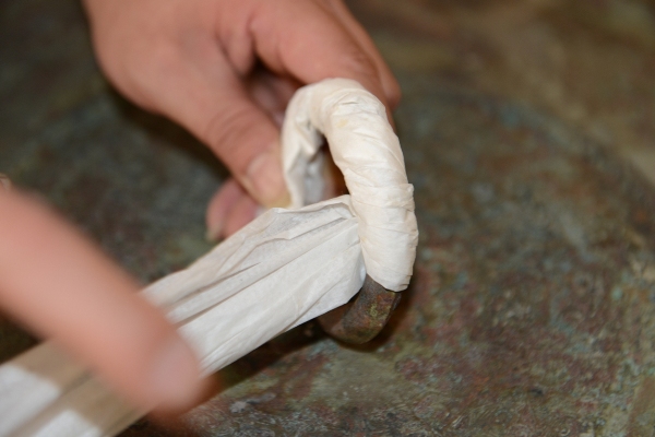 为了保证运输安全,文物的每个细部都要用棉纸包裹起来,防止摩擦损坏文物。