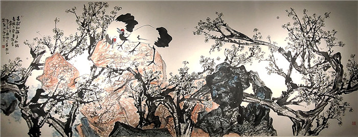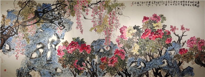 本次画展共展出鲍国增先生近期创作作品近百幅,既有盈尺小品,又有丈余巨幅大作,可谓林廊皆精。鲍国增先生系河南郑州市人,中国美术家协会会员。自幼酷爱花鸟画艺术,早年曾师从孙丙吾先生学习花鸟画,专攻梅兰竹菊,后又潜心临摹花鸟画大师吴昌硕作品。20世纪90年代受长安画派著名画家江文湛、张之光指导,眼界渐宽,花鸟画的创作及鉴赏能力不断提高,且画风大变。2004年,以优异成绩毕业于中国美协花鸟画高研班,得到著名大写意花鸟画大家郭石夫先生赏识并收为弟子,自此,国增先生花鸟画的创作取得突破性进展,且巨幅佳作不断面世,令美术界关注。