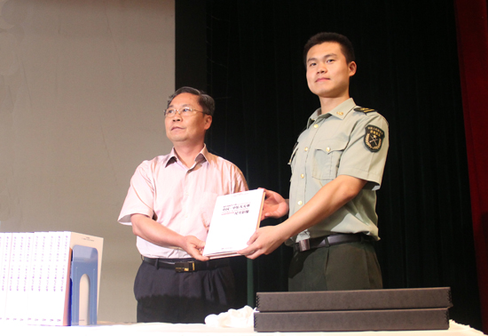 河南省文物局副局长李玉东向河南省军区官兵捐赠新书