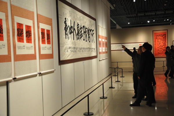 4月10日,由河南省文化厅、河南省政府外事侨务办公室、河南省归国华侨联合会主办,河南省博物院、河南省客家联谊会承办的“张万庆客家文化书法展”在河南省博物院开幕。