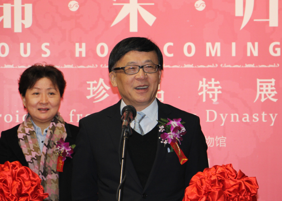 张誉腾在致辞中赞美了展览精美的展品为中华民族智慧与创造的结晶,他为这些远游了一个甲子年之多的文物重回故里与观众见面感到由衷的高兴,他更为退休前能促成此次海峡两岸文化交流的这一盛事感到欣慰。