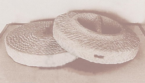 1982年在河南省郑州市荥阳槐林村采集的汉代石磨,圆形,长17.80厘米、扇厚6.50厘米、直经19.80厘米。分上下两扇,上扇中心有一直经为12.5厘米的筒状盛器,中有隔墙将两眼分开,下扇正中有磨脐以承上扇合拢,合面均雕出沟槽用增加磨擦力碎粉粮食。有使用痕迹。