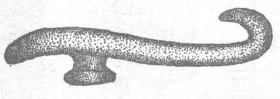 二是从造型上看,日本学者长广敏雄将带钩划分为大、中、小九种类型,大型:琴形、棒形、络龙形;中型:匙形、鸟形、琵琶形;小型:虎形、小钩及其它。[7]