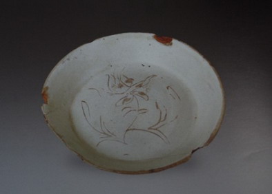 图三 焦作市博物馆宋代白釉的刻划折枝花卉纹盘