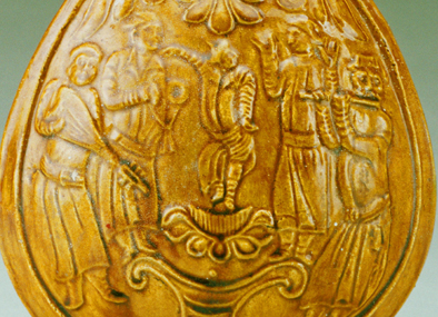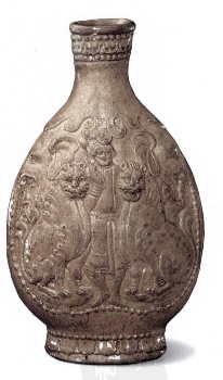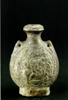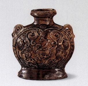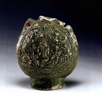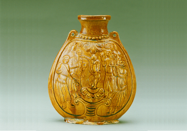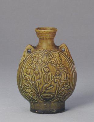 图六  铅褐釉印花人物纹扁瓶  北朝~隋代(386~618年)