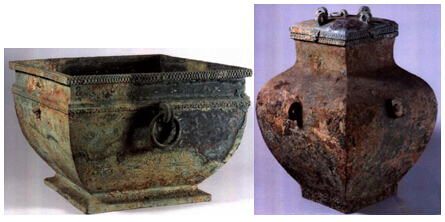 铜器罍的出现则远较铜鉴为早,商代已有此类器,且有圆罍、方罍之别。主要用为盛酒器,合于商代酒风炽盛的习俗。而从广义来讲,如、缶、瓿之属,虽或有专名,其实当可归为一类。