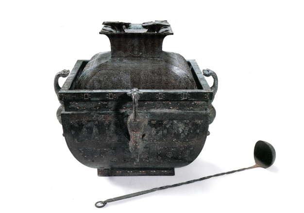 这套铜罍、鉴,虽历经岁月沧桑,表面为锈蚀所掩,但透过大部分保存完好的纹饰,我们还可以想见当年的精致与奢华。