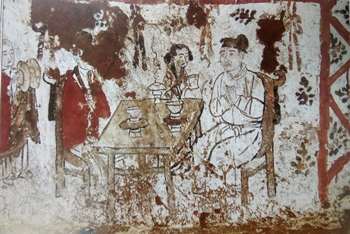 三、这种茶盏作为器物在普通生活或仪式中社会功用的延续宋代的墓葬壁画中,夫妻对坐或王武子行孝图中,茶盏是重要的媒介。在当下的生活中,拜师学艺时、结婚的新人在改口称呼对方的父母双亲为“爸爸、妈妈”“师傅”或“老师”时,都要有个仪式——端茶。若有人问,“问什么要端茶?”你肯定会这样说:“这没什么呀,很平常的,端茶是应该的,为什么不端茶?”很少有人问这样的问题,这是不是古老的习俗、仪式在我们生活中留下的影子呢?