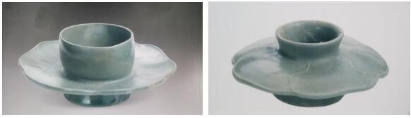 图14  清凉寺汝窑出土北宋五曲葵花形盏托(侧视图、底部视图)