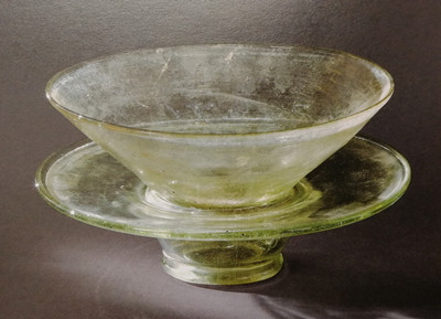 1.唐代素面淡黄色带碗琉璃茶托,1987年陕西扶风法门寺真身宝塔地宫出土,法门寺博物馆藏。碗口径12.6厘米,高5.2厘米,托盘径13.8厘米,高3.9厘米。