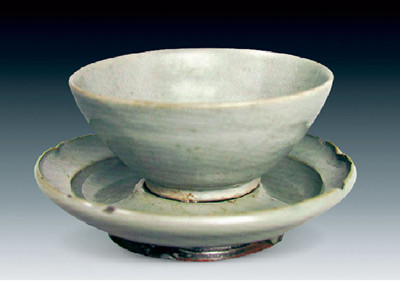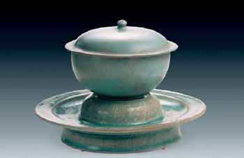 3.耀州窑博物馆藏五代耀州窑青瓷带盏茶托。
