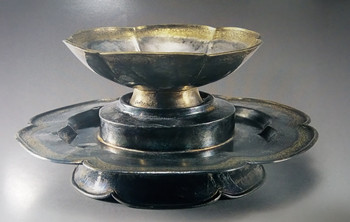 孙机老师认为,盏托,这是用来承茶盏的。与现代用的碟子不同,其上有托圈,就像在盘上固定着一只小碗。摆上茶盏后,盏腹约五分之二被纳入托圈,从而使盏和托稳稳地接合在一起。[3]酒台子的形制则不同,它的盘心没有小碗状的托圈,而是突起一小圆台,酒盏摆在圆台上。这时的酒仅稍稍加温,并不太烫,故无须像喝茶那样,要端着托子举盏。在出土物中,酒台子常与酒盏、酒注及套在注外的注碗(又称温碗)配套;而茶具中的茶瓶是绝对不加注碗的。正像茶盏和盏托可合称“托盏”一样,酒盏和酒台子也可以合称“台盏”。台盏是酒具的专名。《辽史 · 礼志》记“皇后生辰仪中,大臣执台盏进酒,皇帝、皇后受盏。”