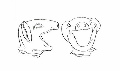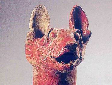 河南偃师二里头遗址中发现的陶塑狗头(图三),张口,竖耳,似在汪汪吠叫,其神态并不凶猛,反而给人安顺祥和之感。