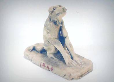 属于原始社会时期的陶塑品目前发现的还不是很多,尤其是陶塑呈独立圆雕的更为少见,大多数作品是作为陶质器皿的附属物而存在,以增强器皿的装饰效果。在雕塑手法上多采用捏塑,即先塑造出物象质朴、简洁的外部轮廓,再在细部用锥镂的方法加以刻划和突出,使作品具有一定的写意性。这一时期随葬的陶塑品与后世的俑像有着本质的区别,它不是替代生人、动物等殉葬,而是与当时的宗教信仰相适应,体现原始人类图腾信仰、祖先崇拜等原始宗教观念,表现着人们的社会生活和内心情感。