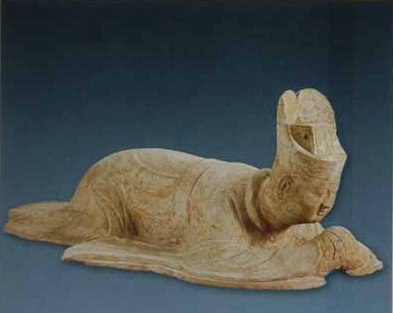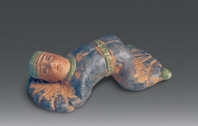 图4  陕西蒲县三合村唐代让皇帝李宪惠陵出土的彩绘匍匐俑
