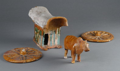 图14  洛阳偃师关窑唐墓出土的三彩牛车