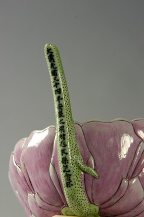 图7 河北博物院育才街院区收藏光绪粉彩荷花吸杯底部
